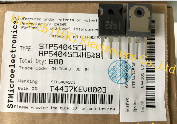 ST STPS4045CW Diode Array 1 Pair Common Cathode Schottky 45V 20A Through Hole TO-247-3